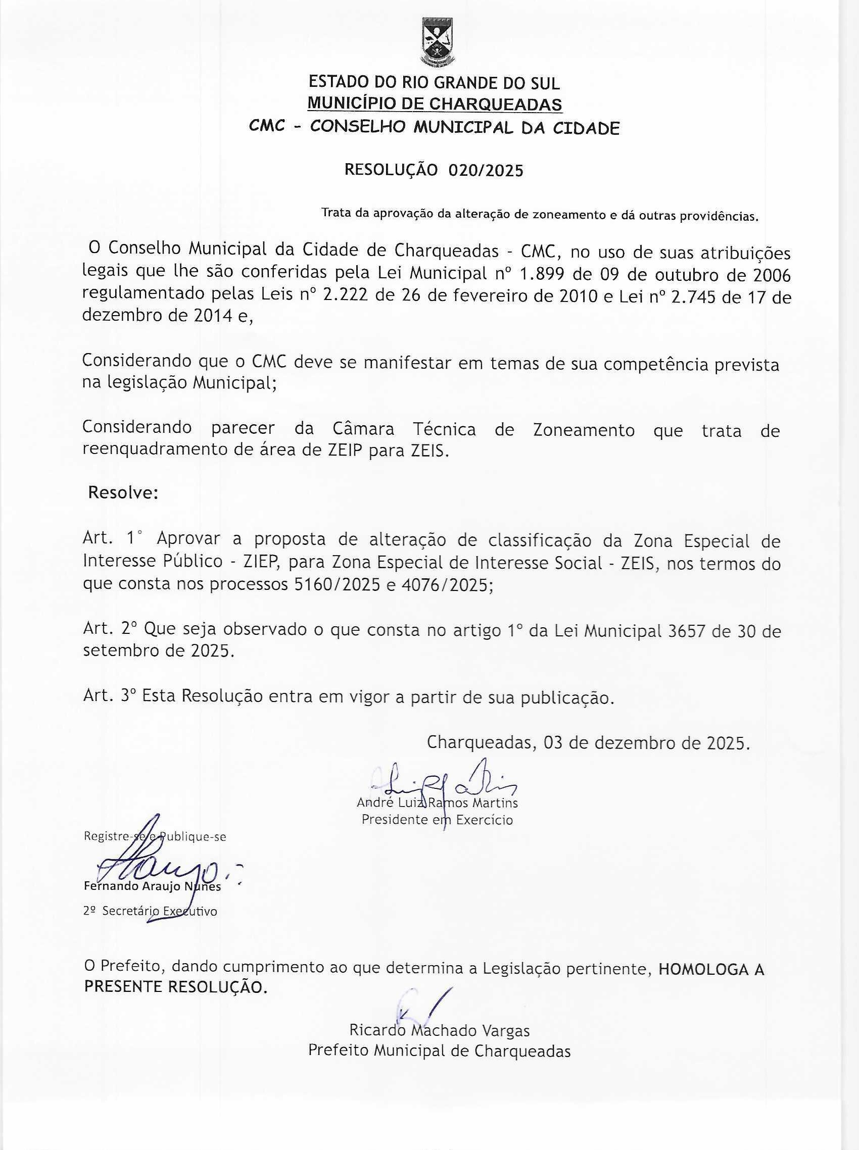 Resoluções do Conselho Municipal da Cidade de Charqueadas |