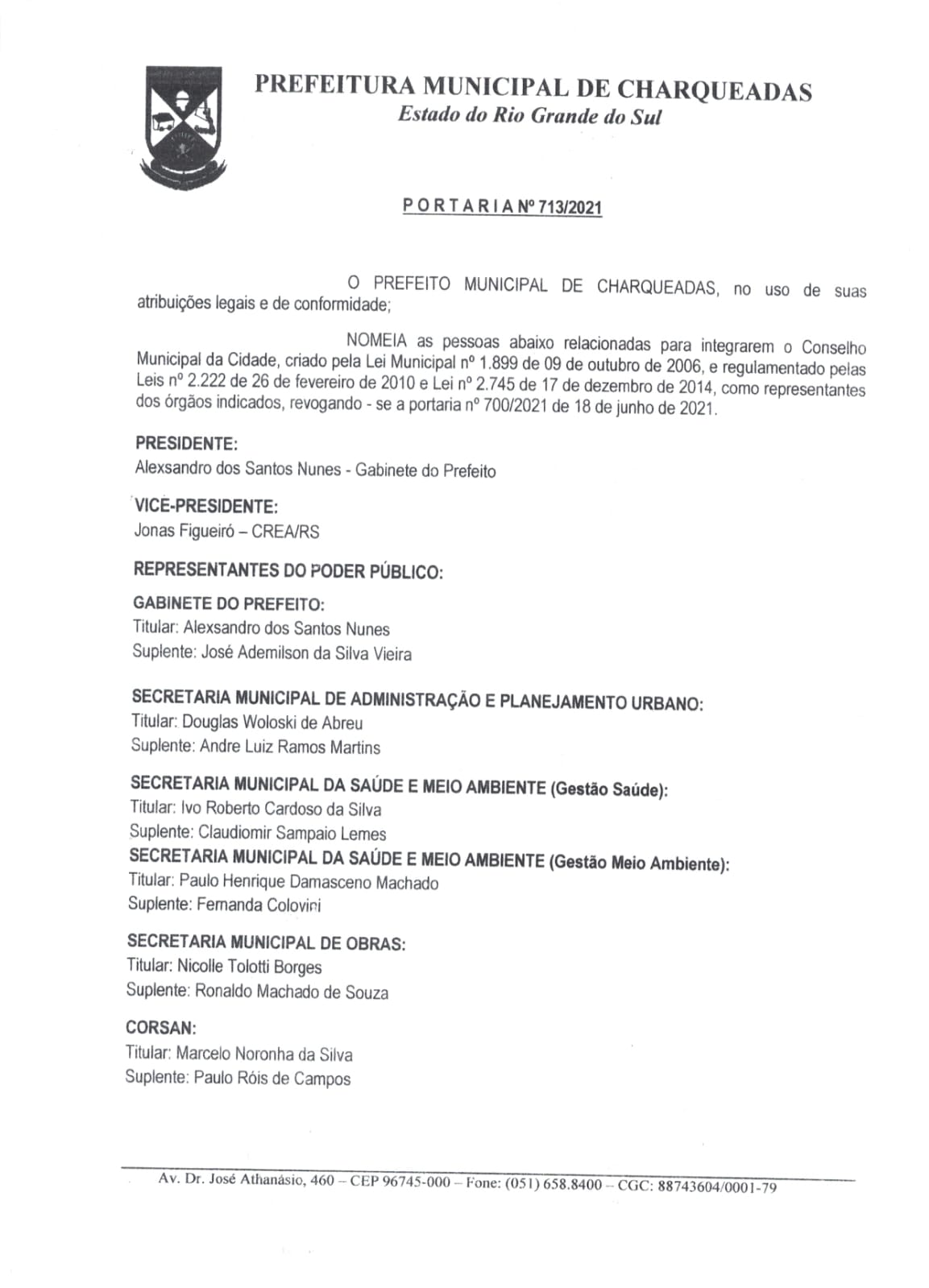 Portarias do Conselho Municipal de Cidade de Charqueadas |